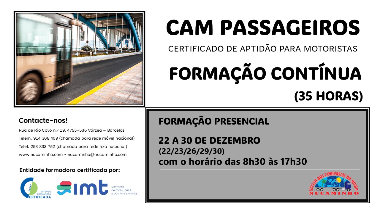 CAM – Passageiros – Certificado de Aptidão para Motoristas – Formação Contínua 35 horas