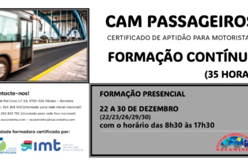 PRÉ-INSCRIÇÃO Formação Presencial | Horário Pós-Laboral | C/ emissão de Cartão de Manobrador | Certificado registado na plataforma SIGO